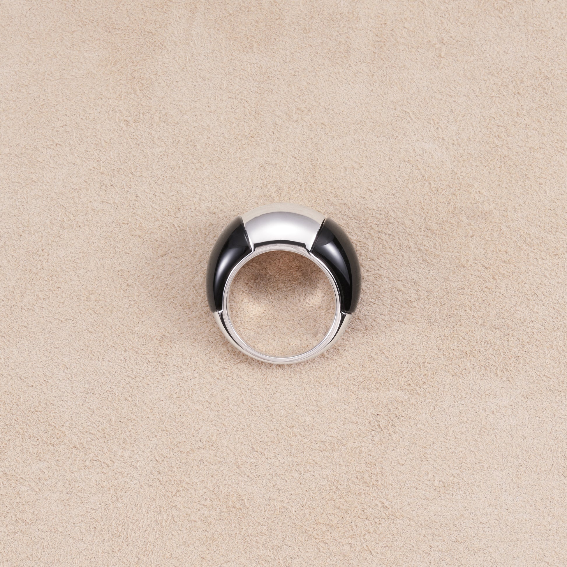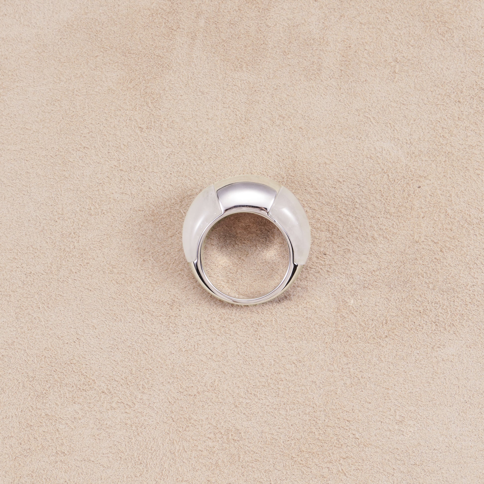 The ring draws on the old bomb ring aesthetic, combining large, curved surfaces and a hemispherical design to continue the Edwardian bomb ring style. The overall curved surface and natural semi-precious stones combine to give a unique vintage vibe.